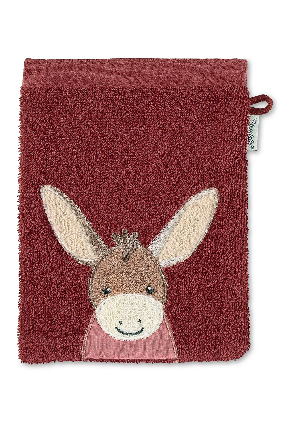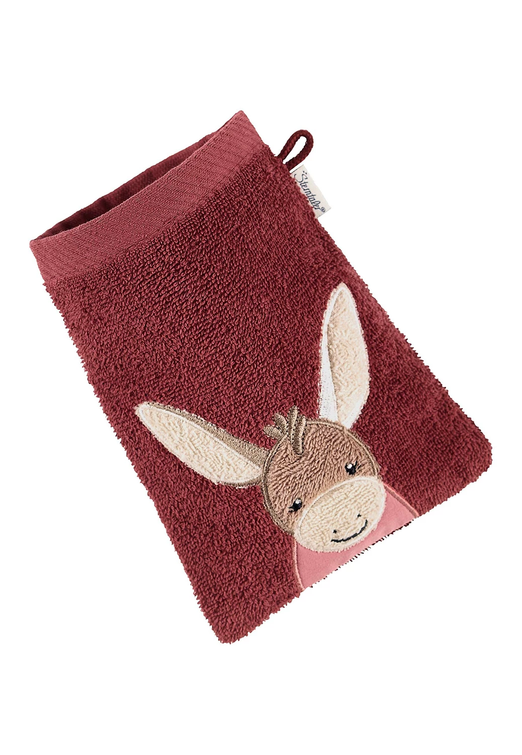 3 Stück Waschhandschuh Esel Emmily in Dunkelrot