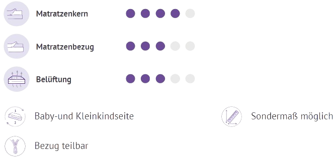 Der Matratzenbezug aus 100 % KBA-Bio-Baumwolle aus kontrolliert biologischem Anbau ist luftdurchlässig, waschbar bis 40 °C und für den Schontrockner geeignet.