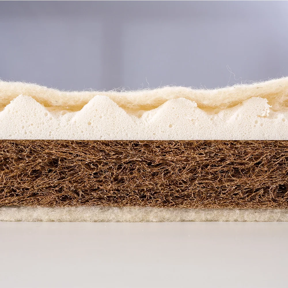 Latexierter Kokos: Der Faserpolster der Kokosnuss ist ein rein pflanzliches Polstermaterial. Kokosfasern bewirken ein trockenes Schlafklima und haben gute klimatische Eigenschaften. Latexierter Kokos wird zusätzlich mit Kautschukmilch besprüht, wodurch die Luftdurchlässigkeit und vor allem die Elastizität wesentlich verbessert wird.