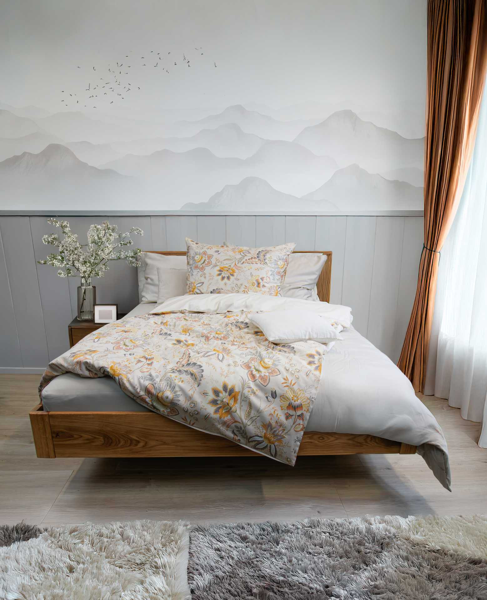Harmonische Wellenstrukturen verleihen dem Design eine beruhigende Bewegung und zeitlose Eleganz. Die klaren Formen und weichen Übergänge schaffen ein Schlafzimmerambiente voller Balance und Stil.