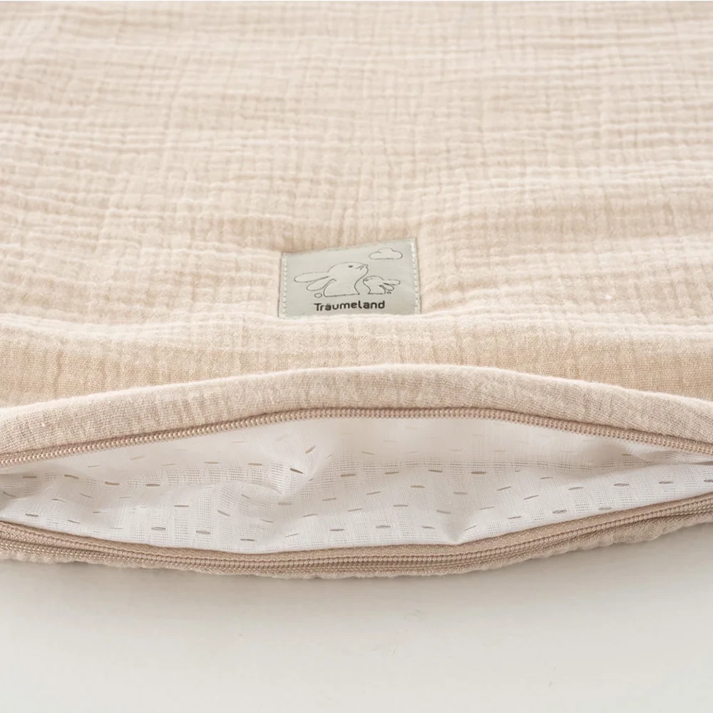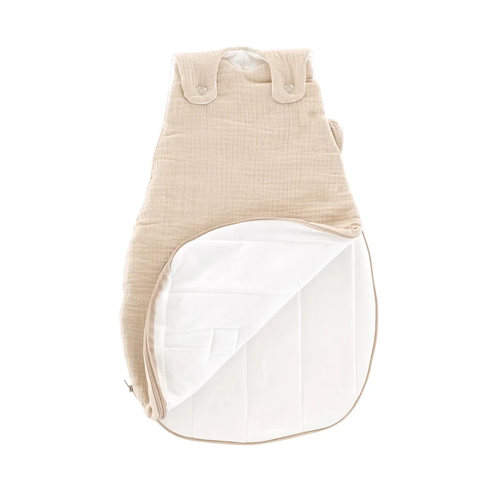 Der LIEBMICH Außenschlafsack Musselin in sanftem Beige umhüllt dein Baby mit zarter Weichheit und sorgt für einen ruhigen, geborgenen Schlaf. Der atmungsaktive Musselin-Stoff reguliert die Temperatur auf natürliche Weise und ist ideal für jede Jahreszeit – luftig im Sommer, kuschelig im Winter.