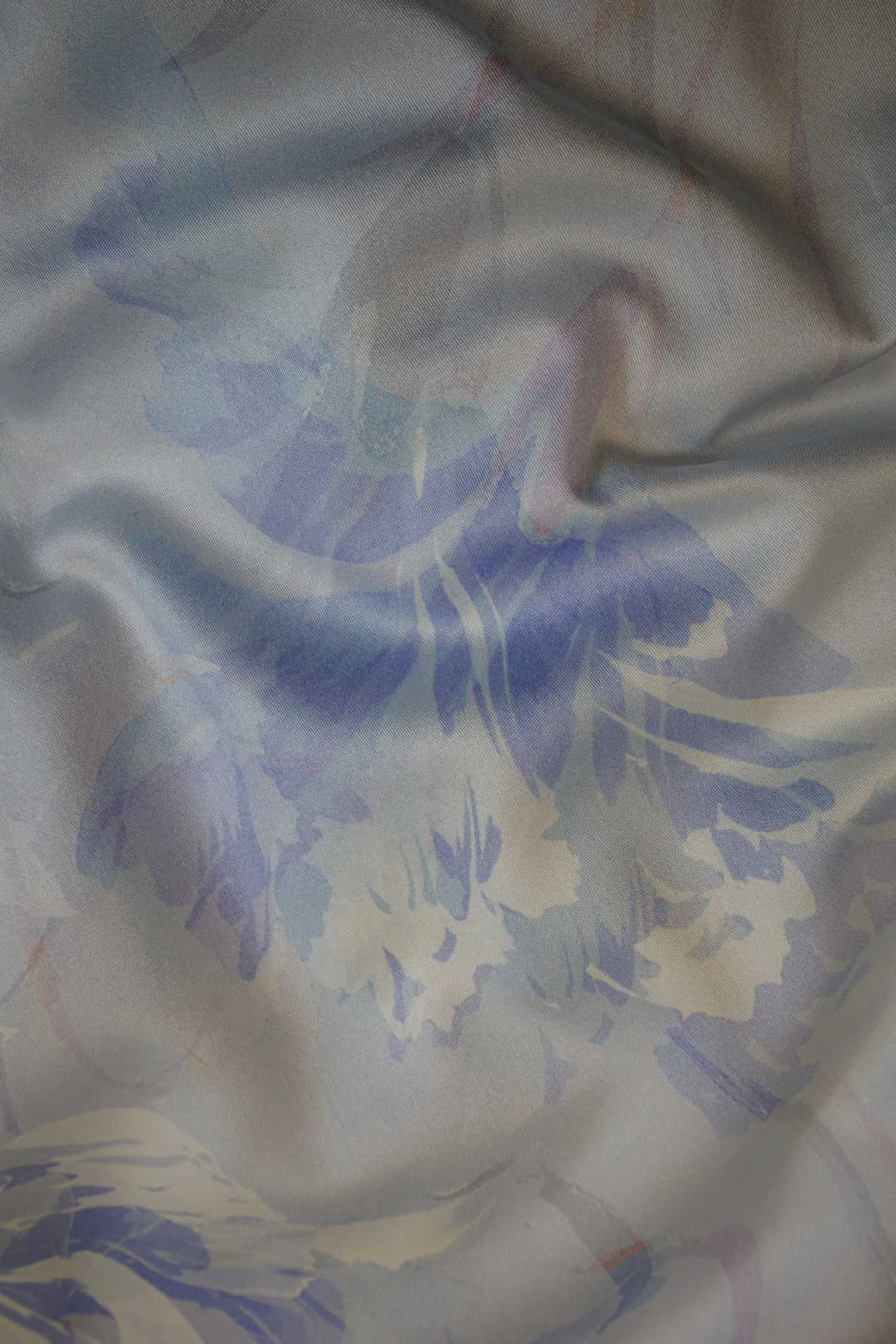 Zarte Blüten in Flieder- und Cremetönen schweben auf einem pastellfarbenen lilafarbenen Fond. Die harmonische Komposition strahlt Ruhe und stilvolle Leichtigkeit aus – perfekt für ein Schlafzimmer, das Entspannung und Schönheit vereint.