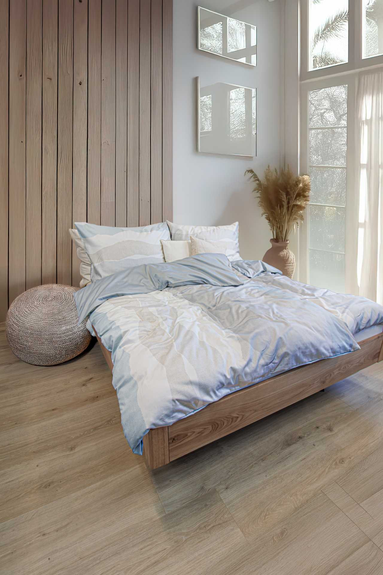 Feine Blumenmotive auf einer dezent strukturierten Oberfläche zaubern eine ruhige und elegante Atmosphäre ins Schlafzimmer. Dieses Design verbindet zeitlose Ästhetik mit einem Hauch von natürlicher Leichtigkeit und sorgt für entspannte Nächte und stilvolle Wohnmomente.