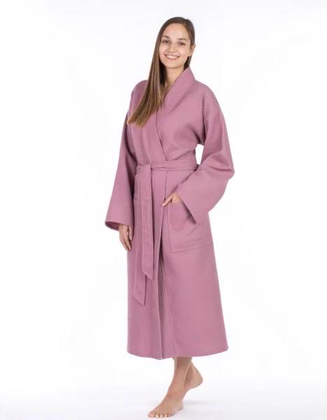 Diese besonders leichten und weichen Waffelbademäntel zeichnen sich durch ihre feine Wabenstruktur und die großzügigen Schnittführung aus.