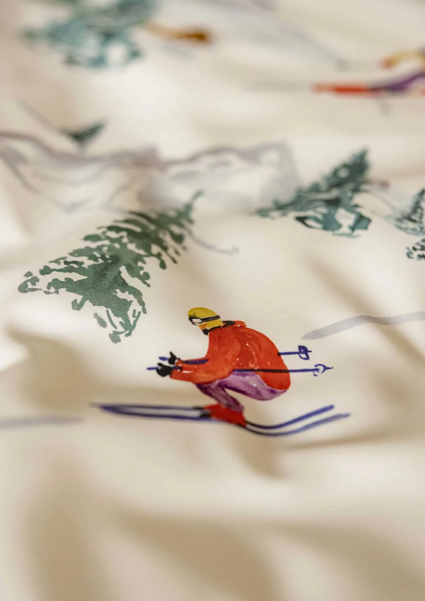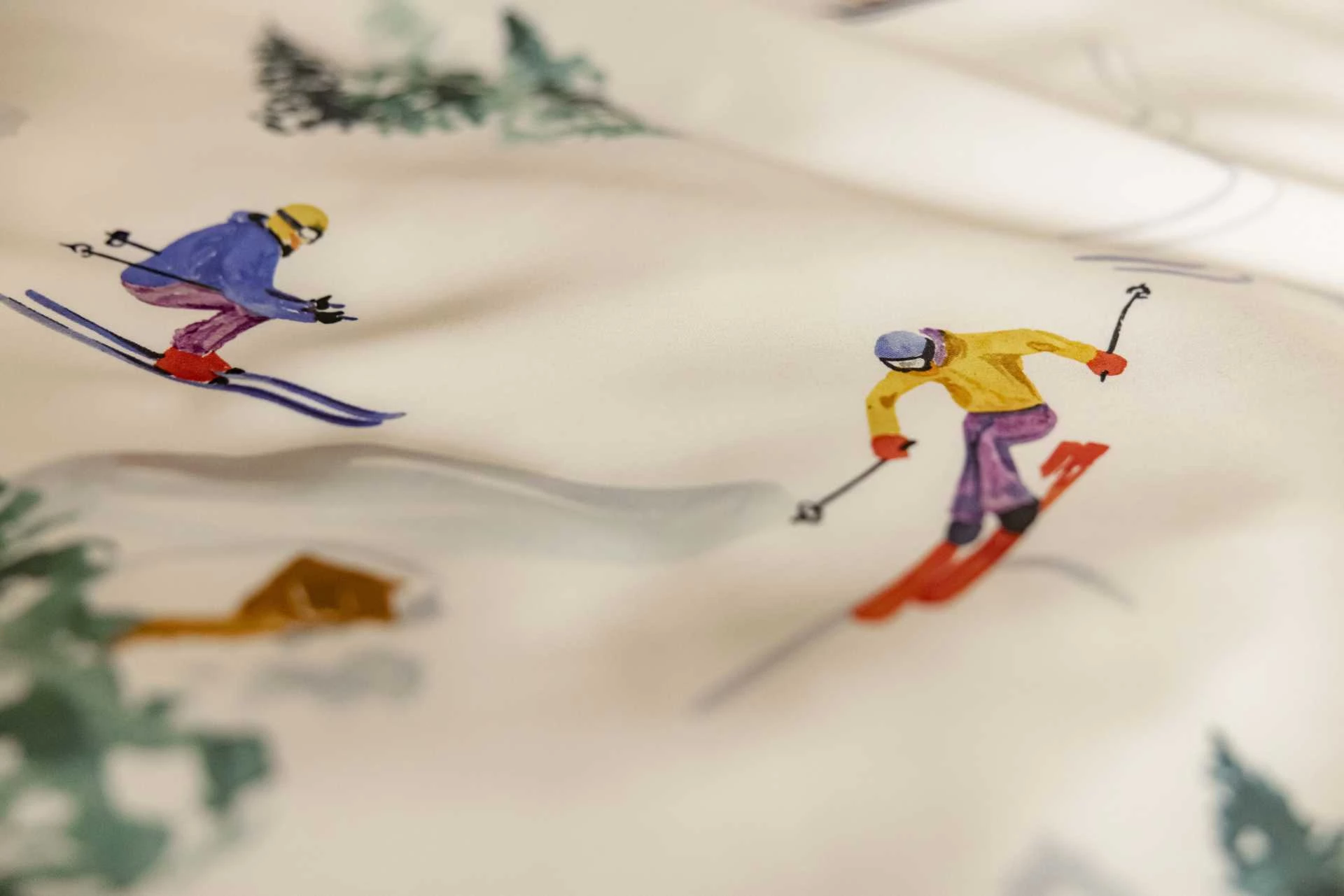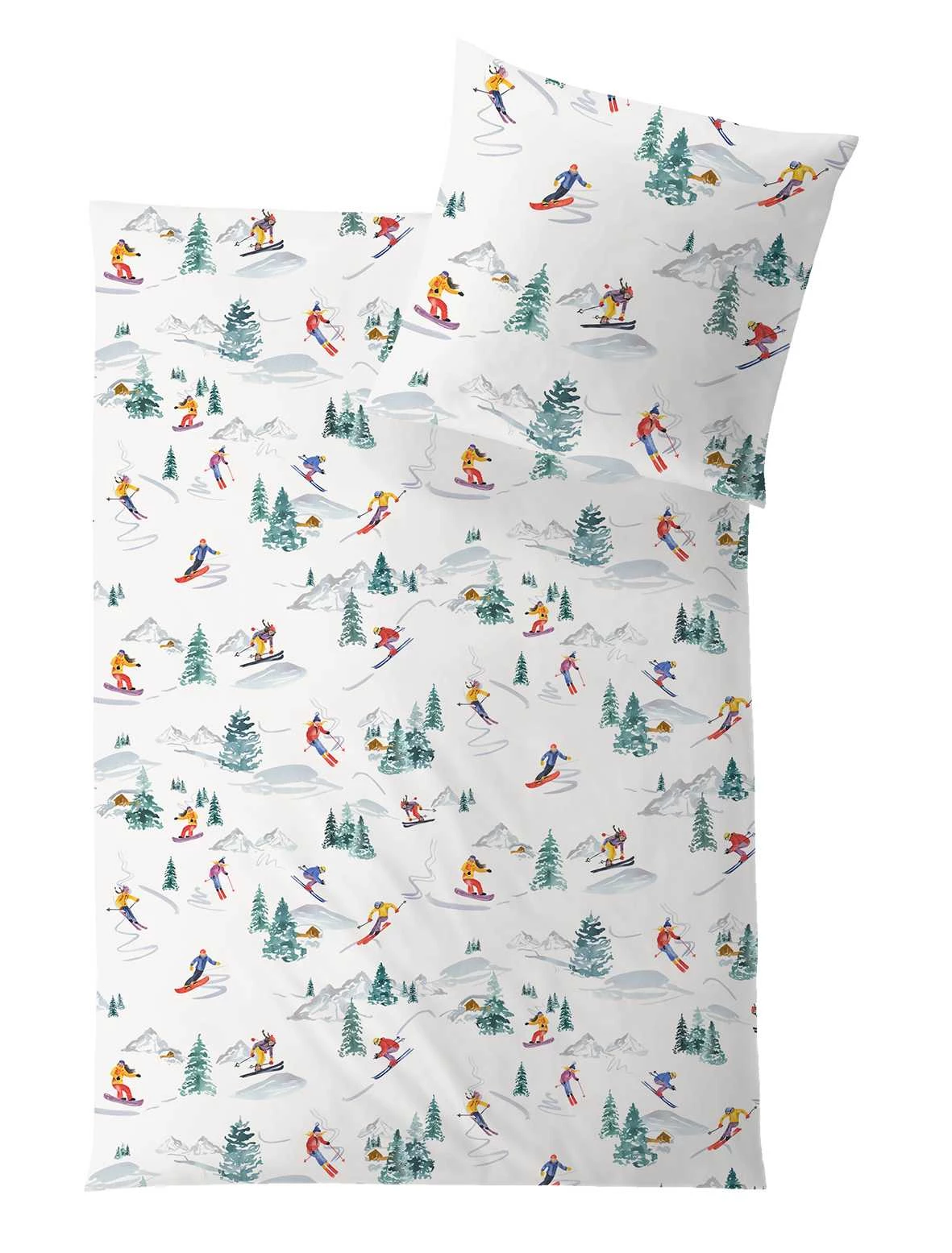 Die Bettwäsche ARLBERG ist mit einem winterliche Motiv gestaltet. Die Unterseite der Bettdecke ist in der Farbe elfenbein.