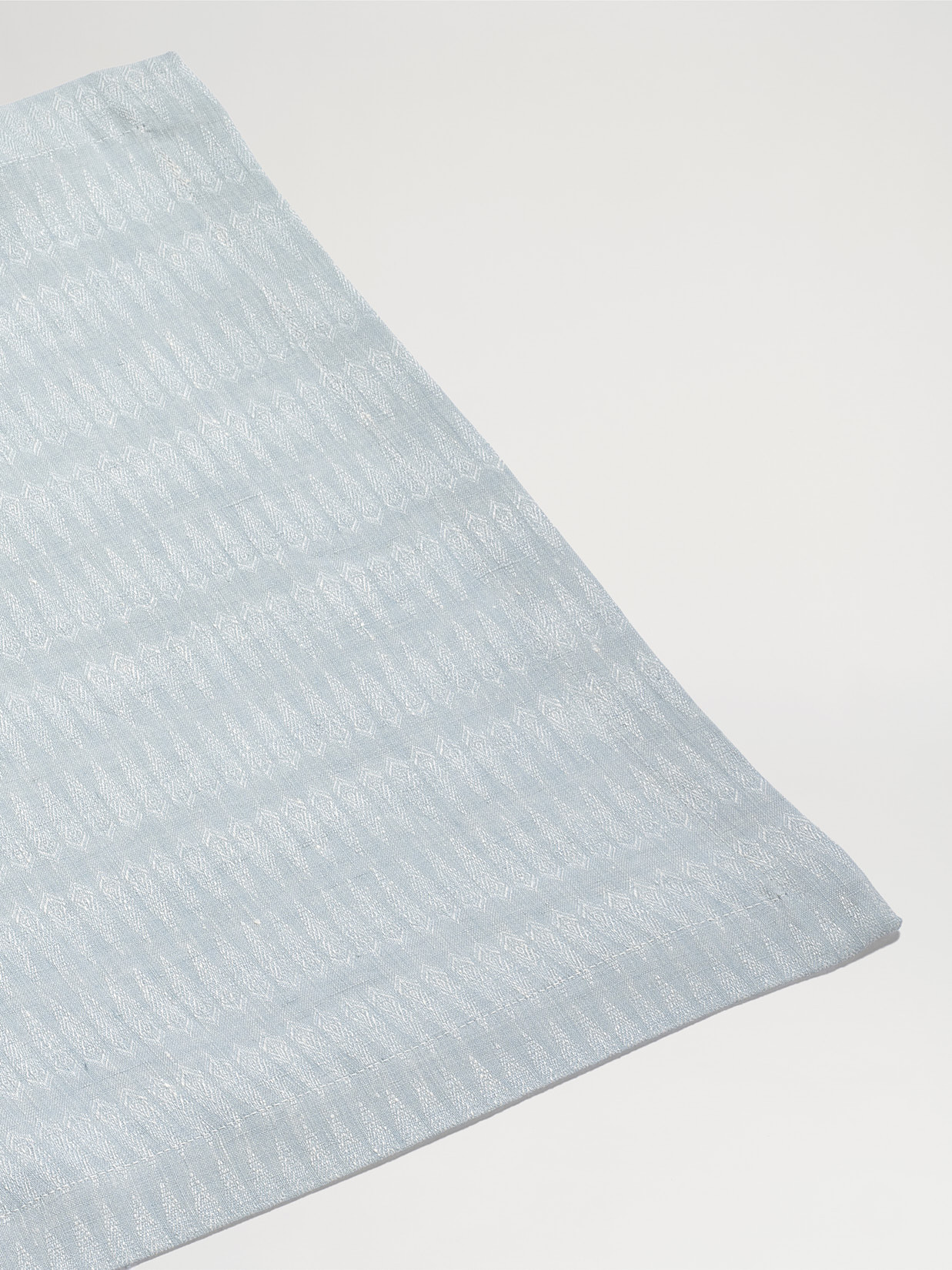 Die aufwendig verarbeitete Deckserviette passt sehr gut zum einfärbigen Tischtuch Welle im gleichen Farbton. Der Saum ist ca. 3 cm breit und läuft an den Ecken schräg zusammen.