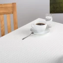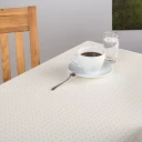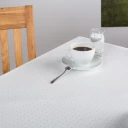 mehr anzeigenDie Damasttischwäsche Punktdamast kann bis zu einer Breite von 163cm (inkl. Spitzen bis 168 cm) wahlweise gesäumt oder mit Spitzen angefertigt werden.